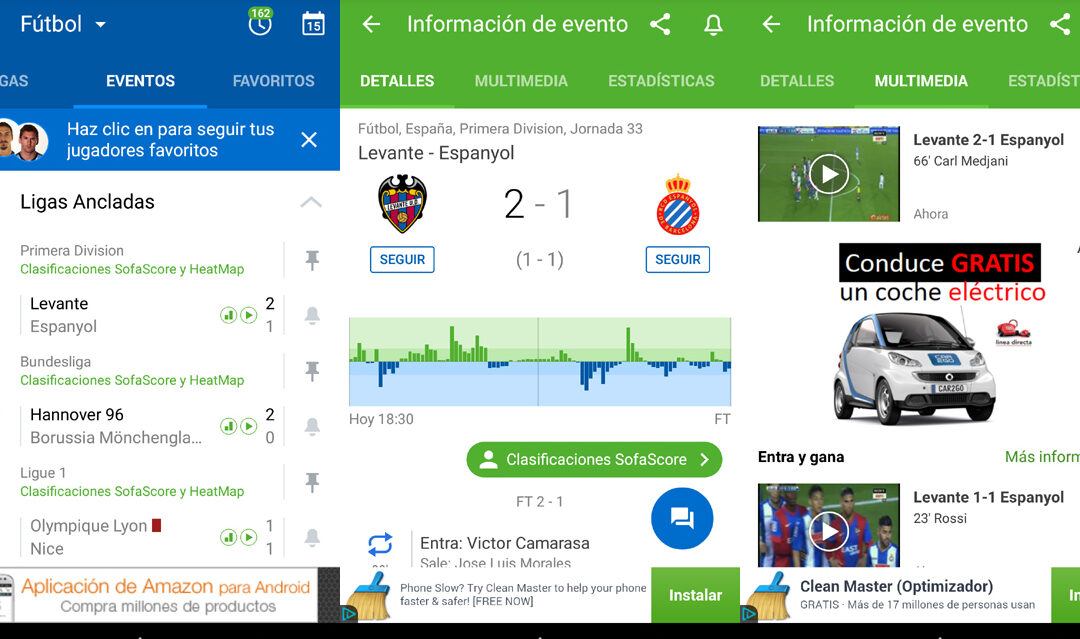 Si buscas una aplicación que se centre exclusivamente en el fútbol, SportMob es la opción ideal. Esta app te proporciona resultados de partidos en vivo junto con alineaciones y detalles previos. También puedes estar al tanto de las últimas noticias y novedades del mundo del fútbol. Además, SportMob muestra las transferencias de fichajes y videos exclusivos de jugadas relevantes, lo que te permitirá disfrutar de contenido exclusivo y mantenerte al día con todo lo relacionado con el deporte más popular del mundo. Con una interfaz intuitiva y de fácil uso, SportMob se ha convertido en una favorita entre los entusiastas del fútbol.